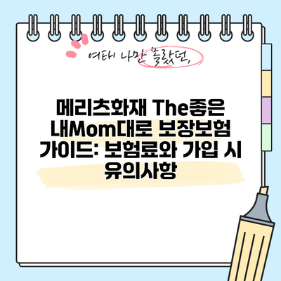 메리츠화재 The좋은 내Mom대로 보장보험 가이드: 보험료와 가입 시 유의사항