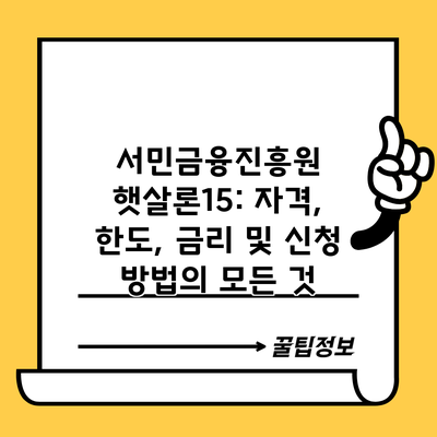 햇살론15 대출 자격과 한도를 상세히 알아보세요.