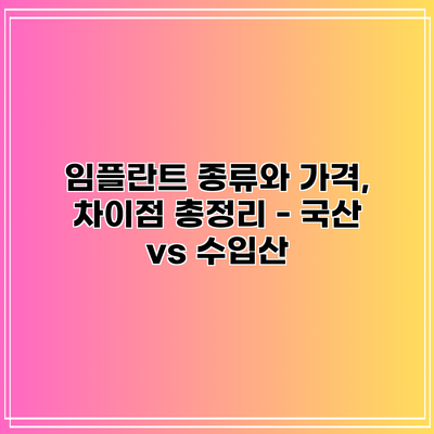 임플란트는 크게 국산과 수입산으로 나눌 수 있어요. 각각의 장단점이 존재하고, 개인의 상황에 따라 선택해야 해요.