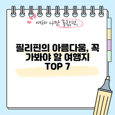 필리핀에 대한 첫인상은 바로 수많은 섬과 아름다운 해변입니다. 이 나라의 매력은 단순히 그 아름다움뿐만 아니라, 다채로운 문화와 친절한 현지인들에서도 찾을 수 있습니다. 이번 블로그 포스트에서는 필리핀에서 꼭 가봐야 할 여행지 TOP 7을 소개하겠습니다.