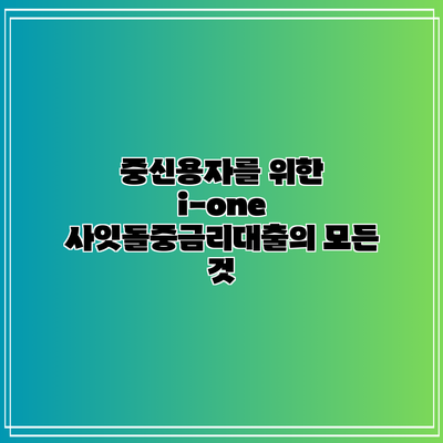 중신용자를 위한 i-one 사잇돌중금리대출의 모든 것