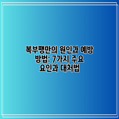 복부는 우리 몸의 중요한 일부로, 건강이 나쁘면 여러 가지 증상이 나타날 수 있습니다. 그중에서도 복부가 부풀어 오르는 증상, 즉 복부팽만은 많은 사람들이 겪는 일반적인 문제 중 하나예요. 복부팽만은 단순한 불편함이 아니라, 만약 지속된다면 심각한 건강 문제로 이어질 수 있다는 점을 반드시 기억해야 해요. 그렇다면 복부팽만의 원인은 무엇일까요? 여기서 가장 흔한 7가지 원인을 알아보도록 할게요.