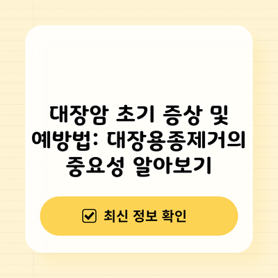 대장암은 한국에서 발생률이 높은 암 중 하나로, 조기 발견과 예방이 매우 중요해요. 대장암 초기증상에 대해 알고, 대장용종제거를 통해 어떻게 예방할 수 있는지 알아보는 것이 필요해요.