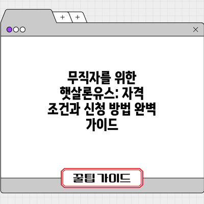 무직자를 위한 햇살론유스: 자격 조건과 신청 방법 완벽 가이드