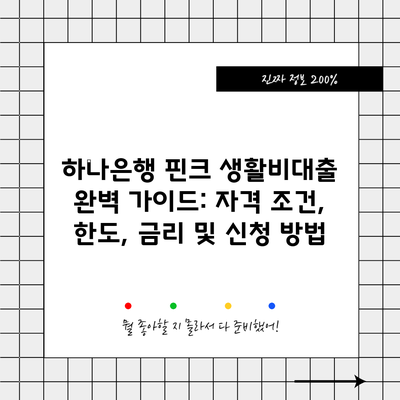 하나은행의 핀크 생활비대출은 급전이 필요할 때 간편하게 이용할 수 있는 대출 상품이에요. 주로 갑작스러운 생활비가 필요할 때 유용하게 사용되며, 비대면으로 신청할 수 있는 점이 큰 장점이랍니다. 아래와 같은 다양한 정보가 포함되어 있으니 자세히 살펴보세요.