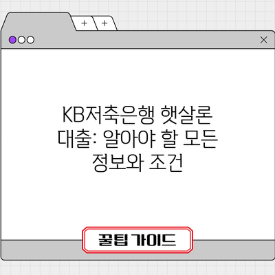 KB저축은행 햇살론 대출: 알아야 할 모든 정보와 조건