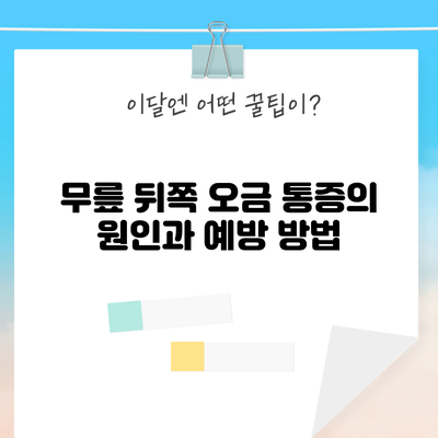 - 골관절염은 무릎 뒤쪽 오금 통증의 주요 원인으로, 50세 이상의 사람에게 가장 흔하게 발생합니다. 이를 통해 관절염의 위험요소를 이해하고 예방할 수 있습니다.