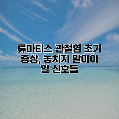 놓치기 쉬운 류마티스 관절염의 초기 신호를 인식하는 것은 매우 중요해요. 이러한 초기 증상들을 간과하면 조기 진단과 치료의 기회를 놓칠 수 있기 때문이지요. 오늘은 류마티스 관절염의 초기 증상에 대해 자세히 알아보도록 하겠습니다. 주의 깊게 읽어보아요!