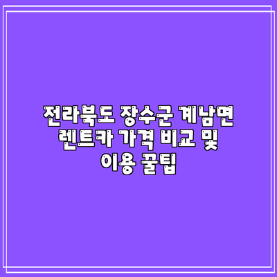 전라북도 장수군 계남면 렌트카 가격 비교 및 이용 꿀팁
