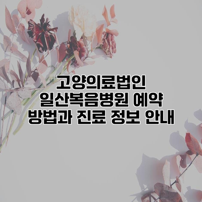 ✅ 고양의료법인 일산복음병원의 진료 예약 절차를 자세히 알아보세요.