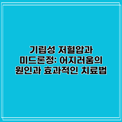기립성 저혈압과 미드론정: 어지러움의 원인과 효과적인 치료법