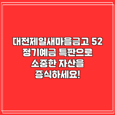대전제일새마을금고 52 정기예금 특판으로 소중한 자산을 증식하세요!