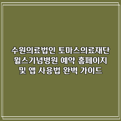 수원 지역에서 진료를 받기 위해서는 эффектив적인 예약 시스템이 필요하죠. 모바일과 웹을 통한 손쉬운 예약 방법으로 환자들이 더 간편하고 빠르게 필요한 진료를 받을 수 있습니다. 여기서는 토마스의료재단에 소속된 윌스기념병원의 예약 홈페이지 및 앱 사용법에 대해 자세히 알아보겠습니다.