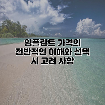 임플란트 가격을 결정하는 요소는 다양하므로, 전문가와 상담하여 최적의 선택을 하는 것이 중요해요.