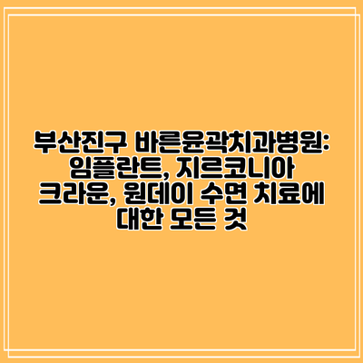 부산진구 바른윤곽치과병원: 임플란트, 지르코니아 크라운, 원데이 수면 치료에 대한 모든 것