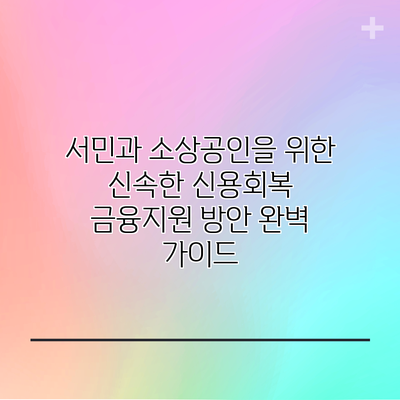 서민과 소상공인을 위한 신속한 신용회복 금융지원 방안 완벽 가이드