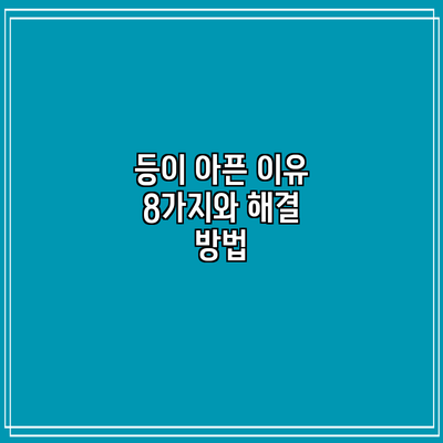 여러 가지 원인으로 등이 아플 수 있는데, 그 중에서 주요한 이유 8가지를 정리해 보겠습니다.