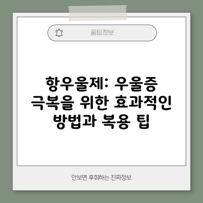 항우울제: 우울증 극복을 위한 효과적인 방법과 복용 팁