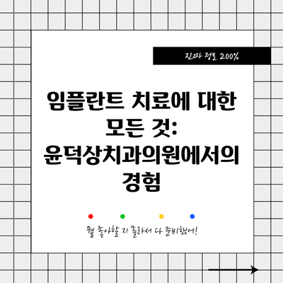 임플란트 치료에 대한 모든 것: 윤덕상치과의원에서의 경험