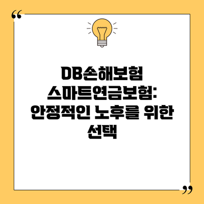 DB손해보험 스마트연금보험: 안정적인 노후를 위한 선택