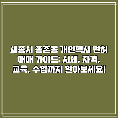 세종시 종촌동 개인택시 면허 매매 가이드: 시세, 자격, 교육, 수입까지 알아보세요!